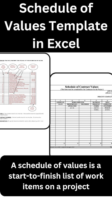 A Construction Schedule of Values (SOV) is a document used to outline the value of work completed at a given point in time on a construction project. It is typically used to track progress and payments on the project and is submitted to the owner or lender on a regular basis. The SOV is based on the original project budget and is broken down into individual line items. Each line item corresponds to a specific aspect of the project, such as excavation, framing, or electrical work. The SOV includes the total value of each line item, the percentage of completion for each item, and the corresponding amount to be paid. This document helps the owner, lender and contractors to verify that the work performed corresponds to the amount invoiced and that the project is progressing as planned.